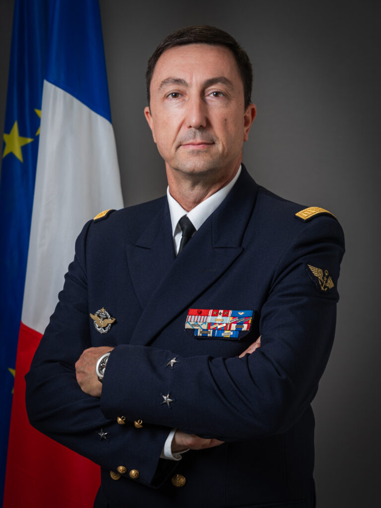 Issu de la promotion 1994 de l’école navale. Il est breveté pilote de chasse et totalise près de 3 000 heures de vol. Il a participé aux opérations en Afghanistan, Libye, Syrie et Irak.